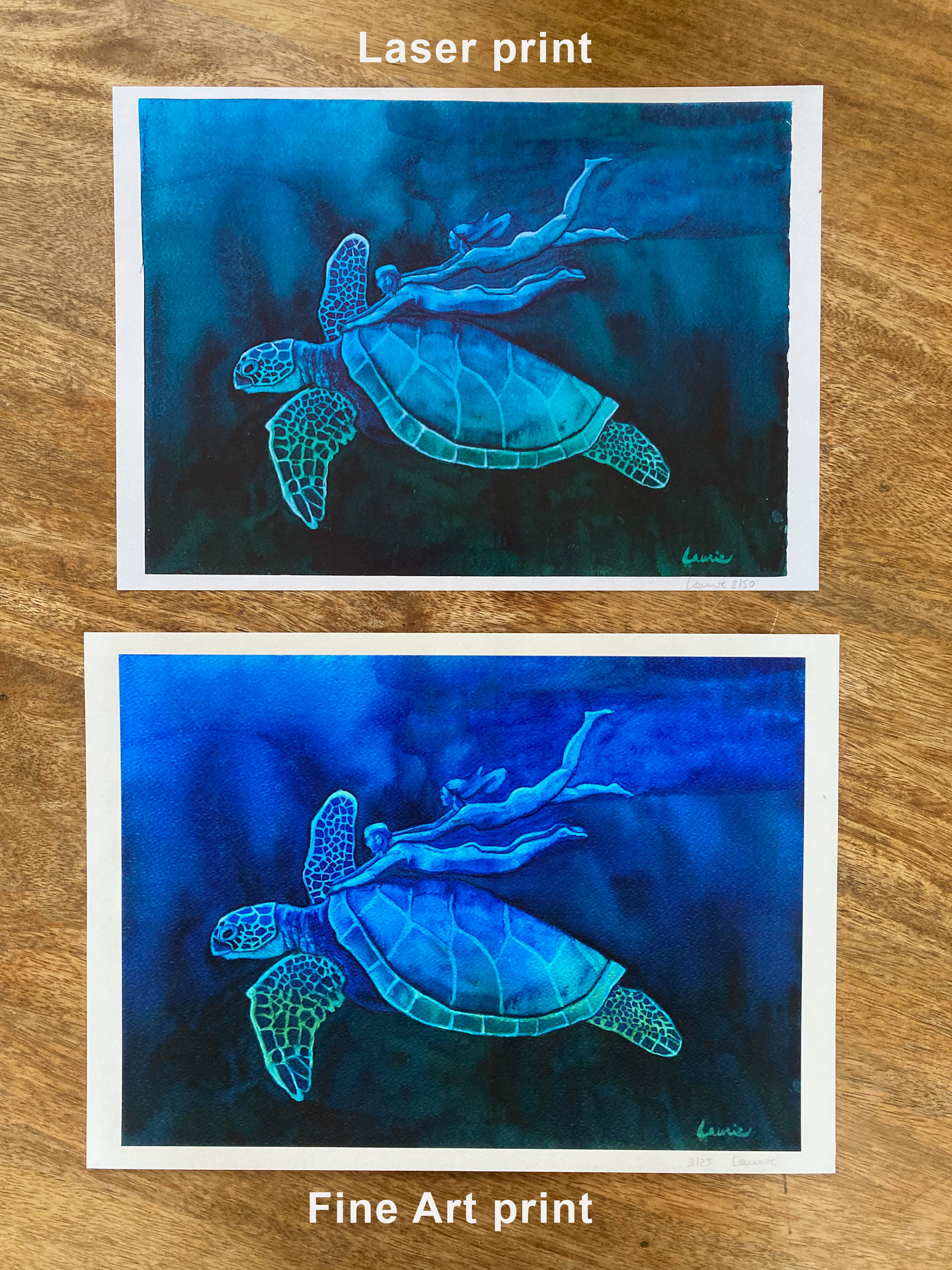 If you wonder why two different type of prints & different prices, here you can see the difference between laser print or fine art inkjet print.