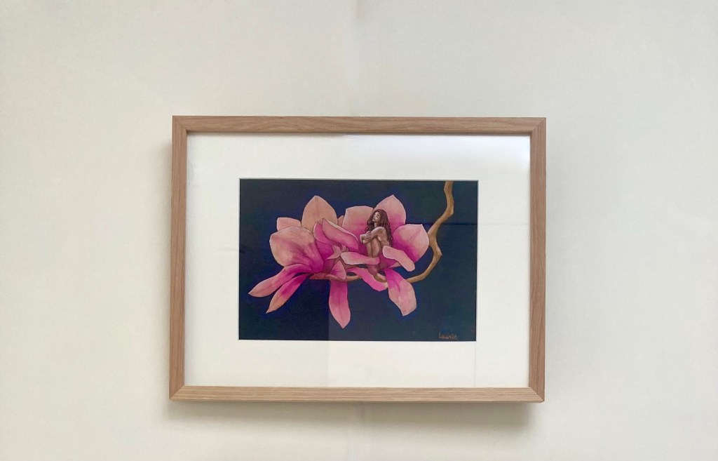 260€ avec cadre protection UV en chêne et passe partout blanc cassé compris – with UV protection frame